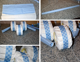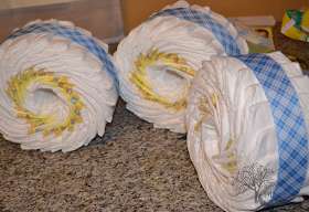 I love when I have an opportunity to try something new. Even when it is just new to me. I have a baby shower to go to tonight and the gifts are supposed to be practical, i.e. diapers, wipes, etc. (baby #5, boy #4) and so I thought I'd try my hand at a diaper cake. So, I looked on 'the Google' for boy diaper cakes and saw some fun ideas, one being a tricycle which looked easy and fun and cute! First I made sure the hostesses were not planning on doing a diaper cake. I didn't want to step on any toes.